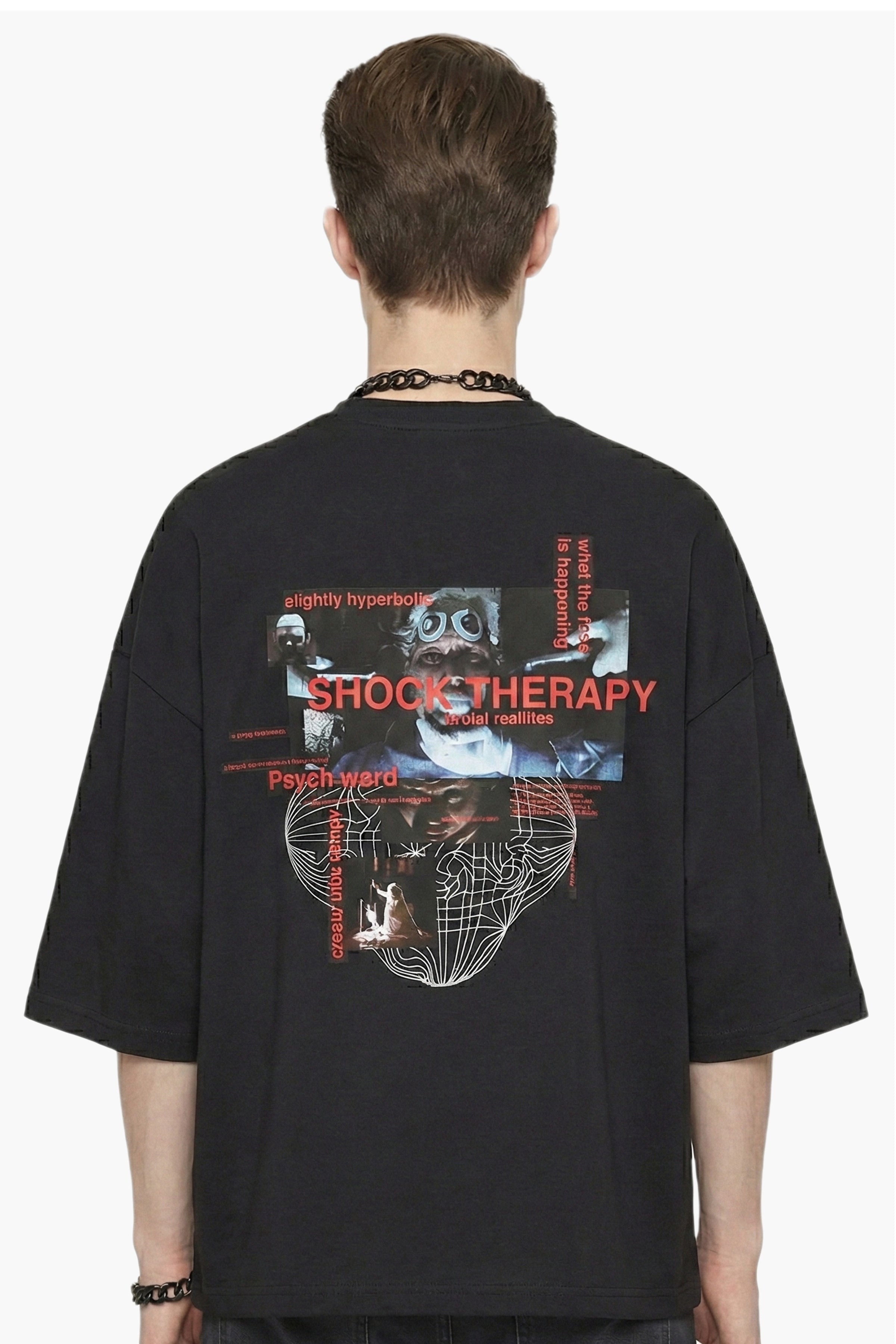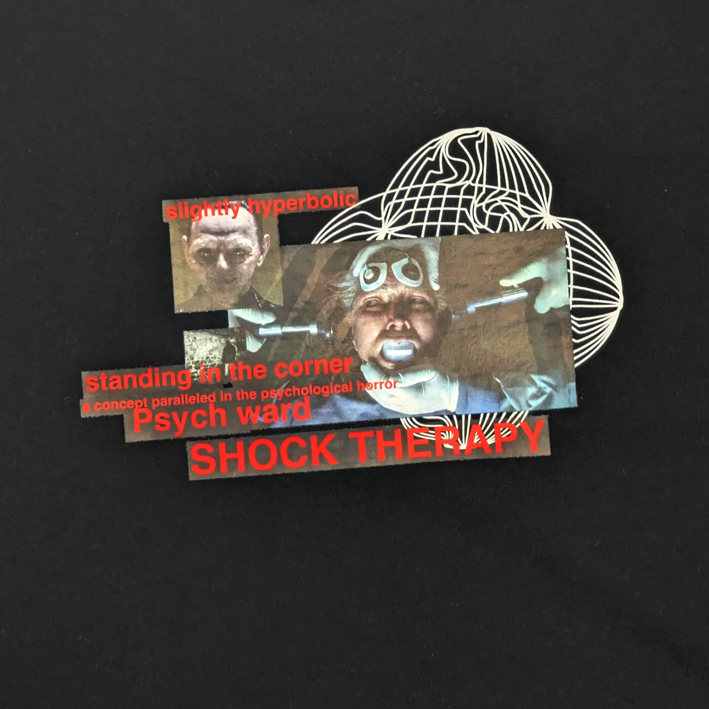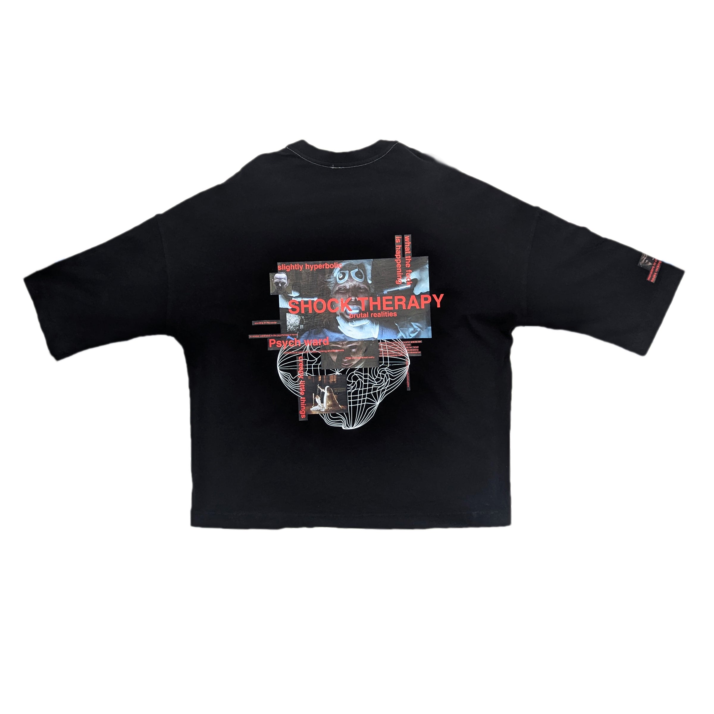 Make a statement with this edgy tee showcasing exclusive shock therapy artwork.