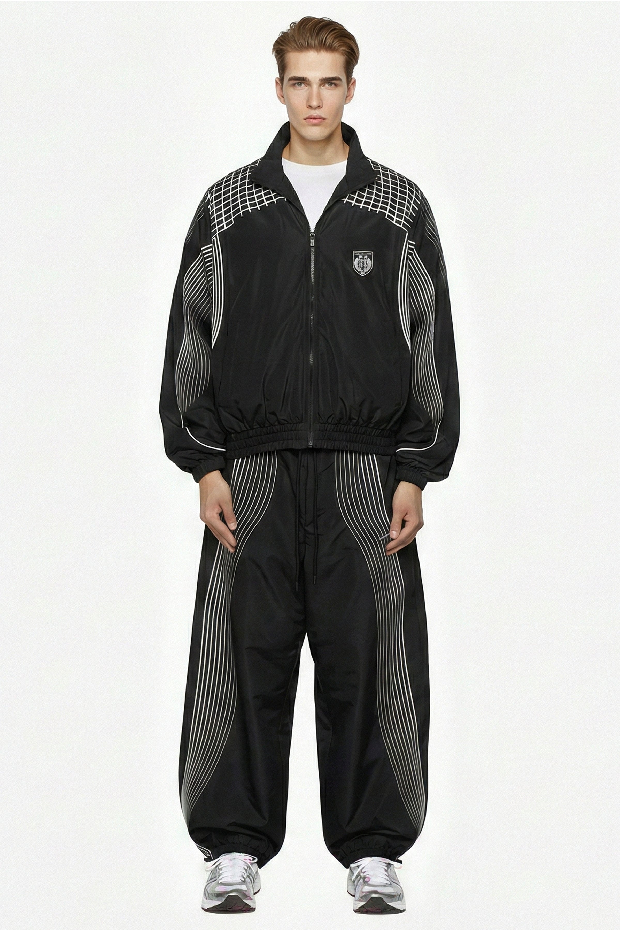 Elevate your casual wardrobe with this striking oversized Wave Runner track jacket.