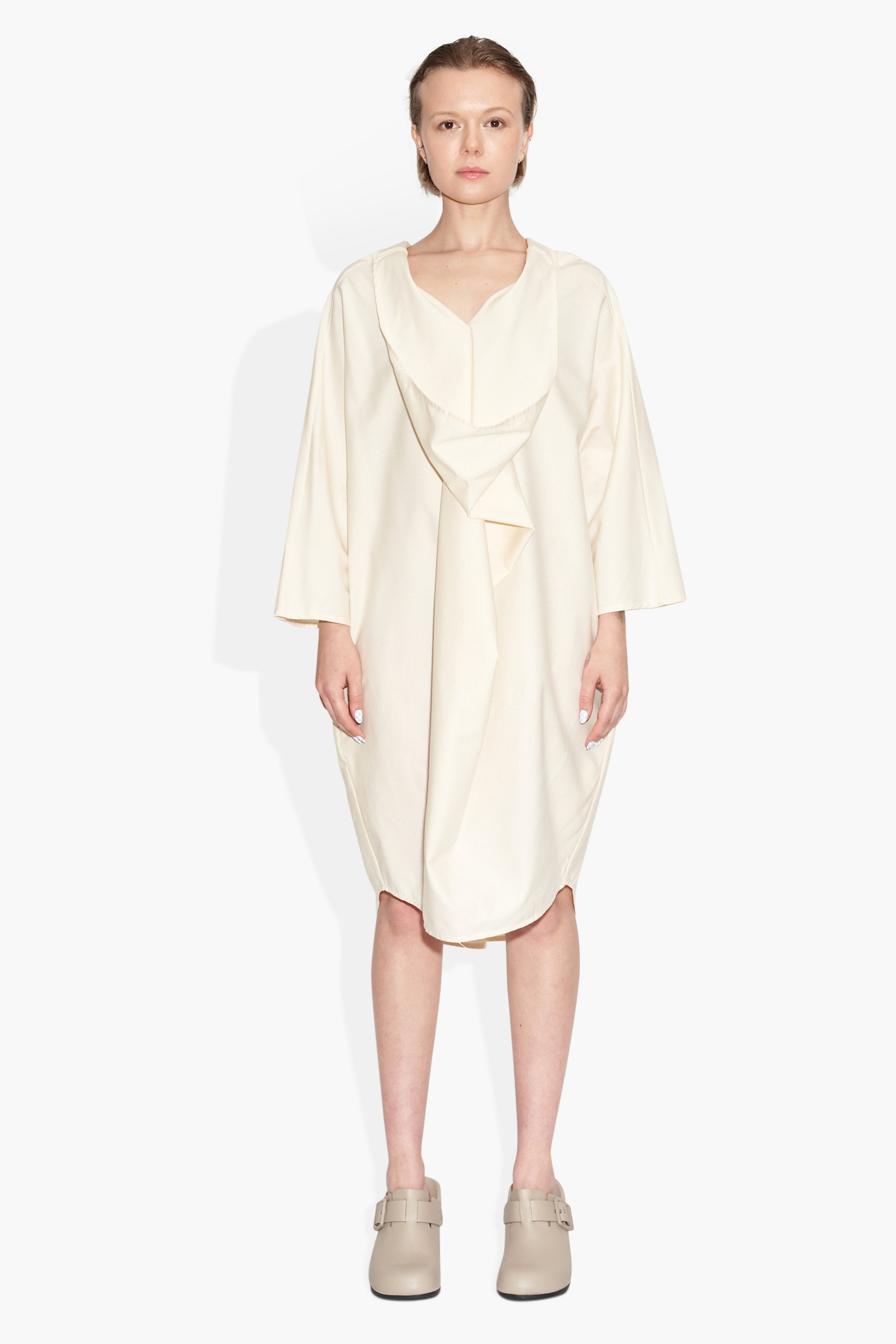 This poncho dress showcases a distinctive cowl drape at the front, offering versatile styling options. It includes French seam construction inside for a refined finish and convenient side pockets. It’s crafted from a soft blend of 50% cotton and 50% Tencel with a 158 gsm weight. Ethically Made in Los Angeles.