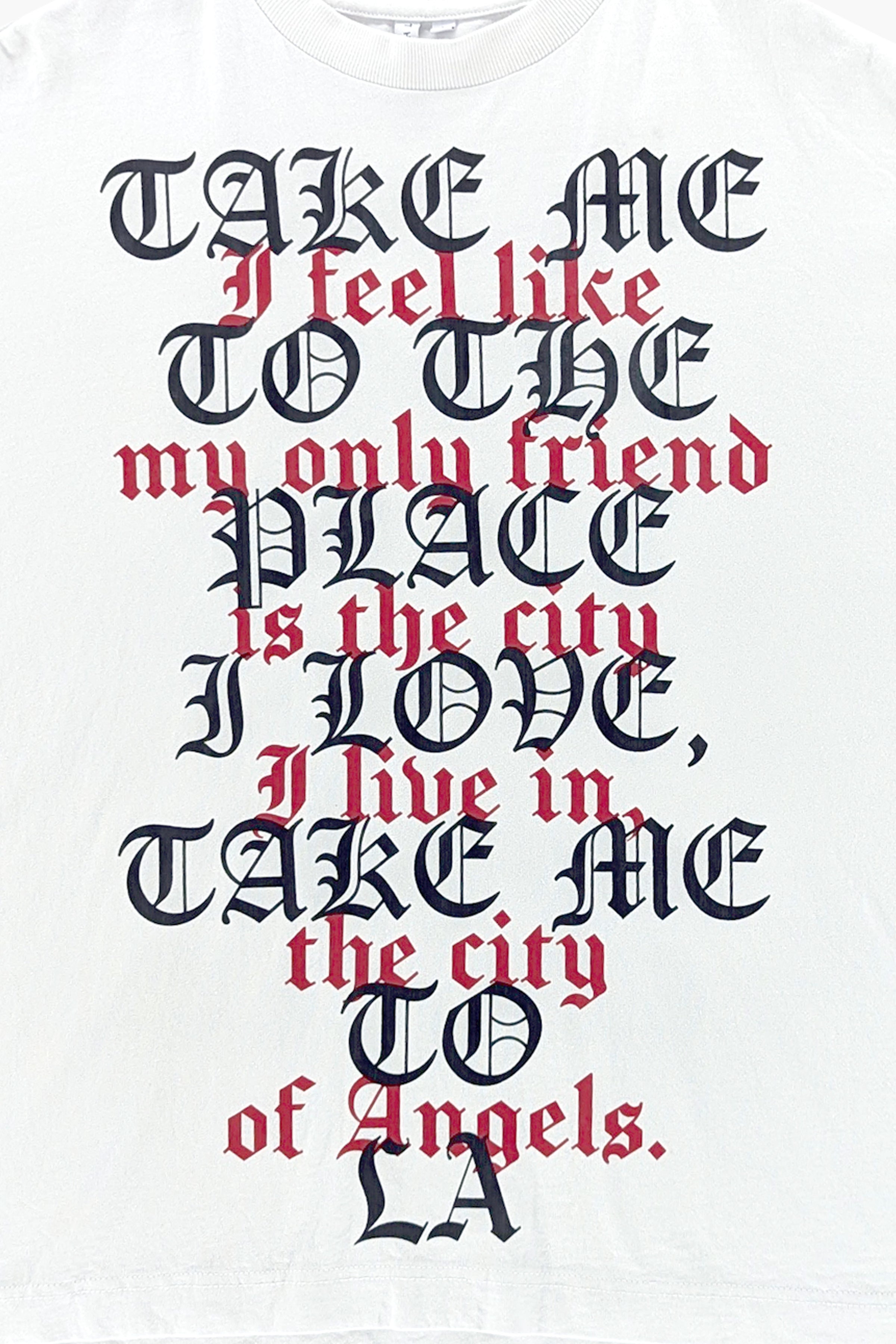 This tee features the "Take me to the place I love, Take me to LA" message at front. Made from 100% cotton heavy jersey with a relaxed, oversized fit and garment-dyed finish. Proudly made in LA.