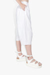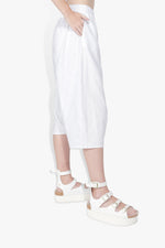 Crafted from a linen-rayon blend, these drop crotch pants offer a relaxed yet stylish silhouette. Featuring side seam pockets and an elastic waistband for comfort, they are thoughtfully made in Los Angeles.