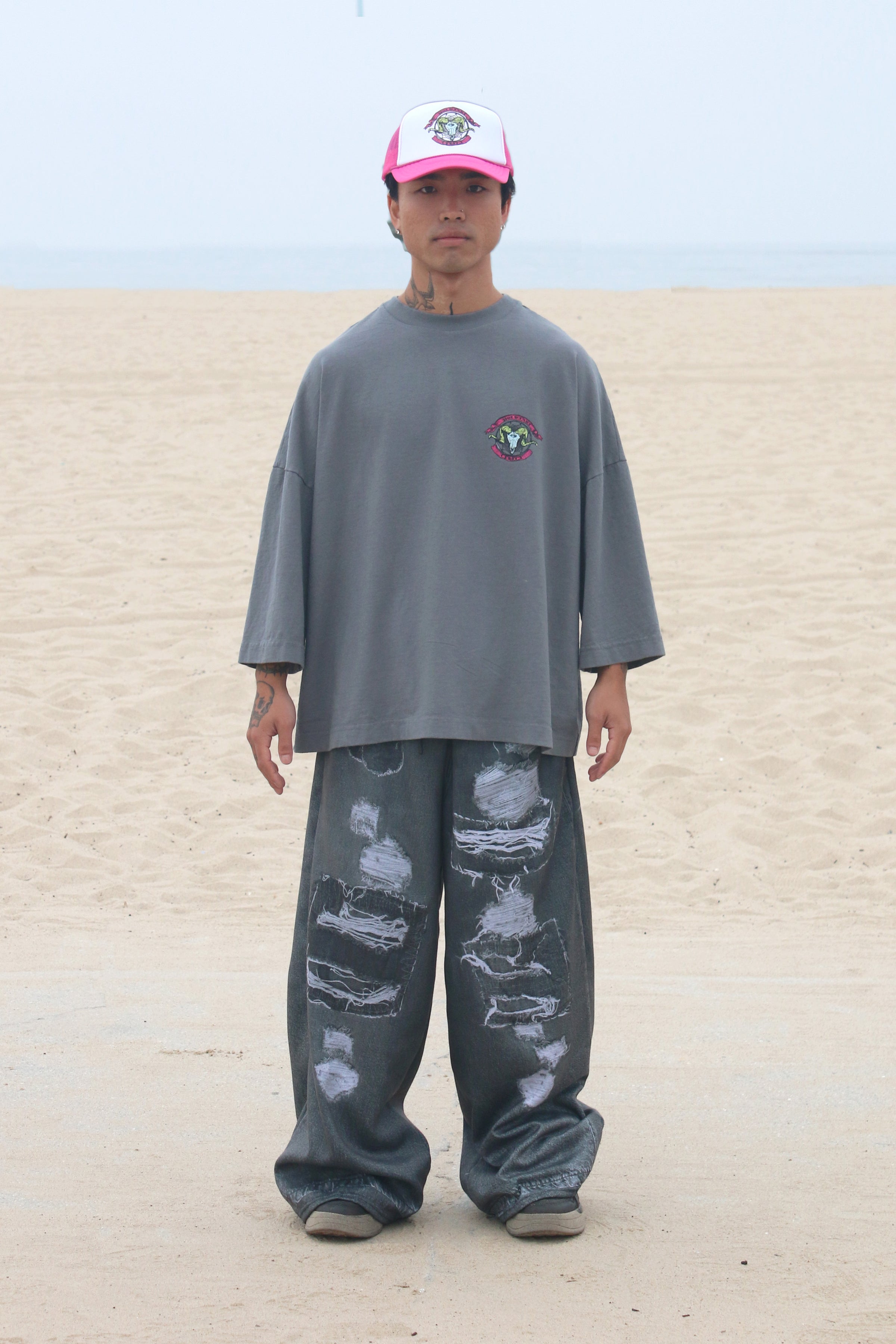 This Huge T features a skate-inspired hand-drawn print on a garment-dyed fabric. Crafted from 14-ounce heavy 100% cotton jersey knitted in Los Angeles for quality and durability.