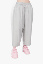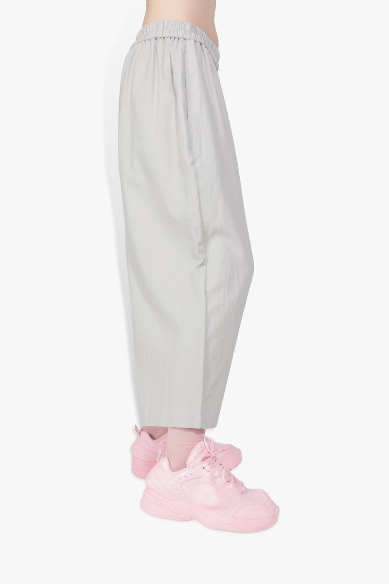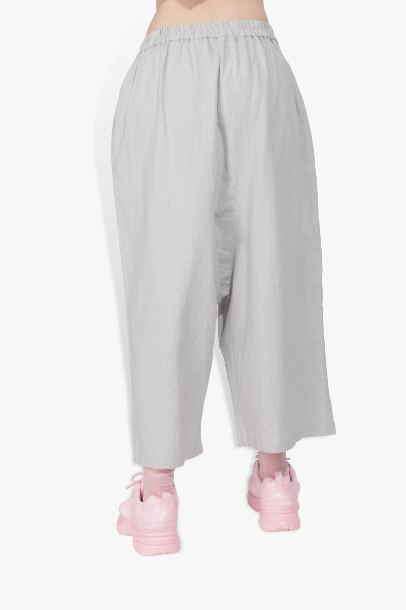 These Lopsided drop-crotch pants feature an elastic waistband and convenient side pockets. Crafted from a linen-rayon blend and made in Los Angeles, they showcase a distinctive wide-leg silhouette enhanced by an added gusset for extra volume and style.